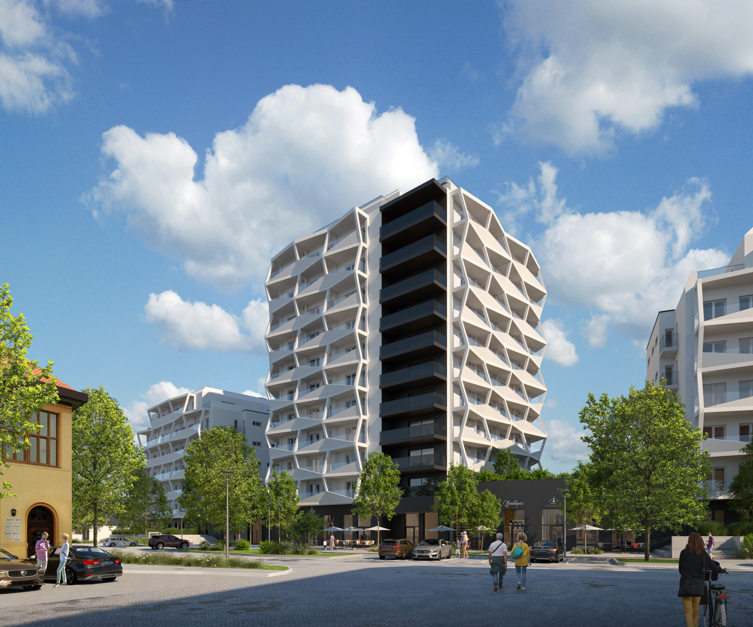 Byl to jeden z našich hlavních záměrů, postavit nejen bytový komplex, ale polyfunkční projekt, který se svým vzhledem odliší od běžných staveb v Brně. Chtěli jsme, aby stavba zaujala už při pohledu zvenku, a to se podařilo. Byl to jeden z největších cílů i největších výzev, aby se projekt podařilo udělat v této podobě.