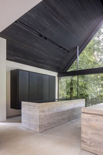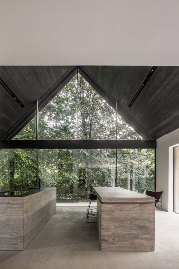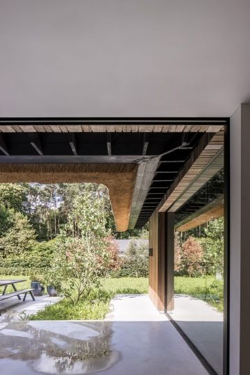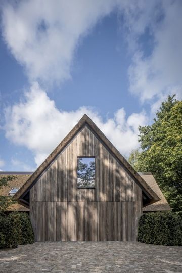 Rozšířený dům, který se nachází na lesní mýtině v belgické vesnici Waasmunster, byl obložen dřevěnými prkny a zakončen doškovou střechou, přičemž obojí bylo vybráno tak, že postupně zvětrává a splyne s okolím. "Stávající dům byl buržoazní interpretací venkovského života, stejně jako styl v osmdesátých letech," řekla Sofie Philipsová, spoluzakladatelka Britsom Philips. "Rekonverze má za cíl převést tento venkovský aspekt do designu orientovaného na krajinu otevřením fasád do okolní zahrady," dodala.