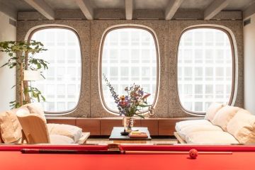 Jeden z nejinovativnějších belgických architektů 20. století, Constantin Brodzki, který se do Belgie přestěhoval před druhou světovou válkou, navrhl původní interiér budovy ve spolupráci s belgickým interiérovým architektem a designérem nábytku Julesem Wabbesem. Fosbury & Sons pověřila místní studio Going East, aby tyto vnitřní prostory překonfigurovala.