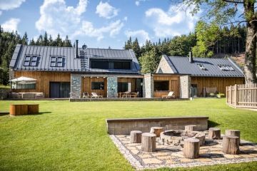 Anička nabízí luxusní bydlení pro 16 osob s bezbariérovým přístupem. Je ideálním místem pro chvíle, které chcete trávit s rodinou či přáteli a cítit se zde jako doma. Chata je situována přímo u lesa, kde je zajištěno naprosté soukromí. K dispozici je soukromé parkoviště, venkovní vyhřívaný bazén, finská sauna s ochlazovacím bazénkem, ohniště či dětské hřiště. V hlavní budově je k dispozici ubytování s dvanácti lůžky, ve vedlejší budově samostatný apartmán pro čtyři osoby. Vyhřívaný bazén můžete využít v měsících od od května do října.