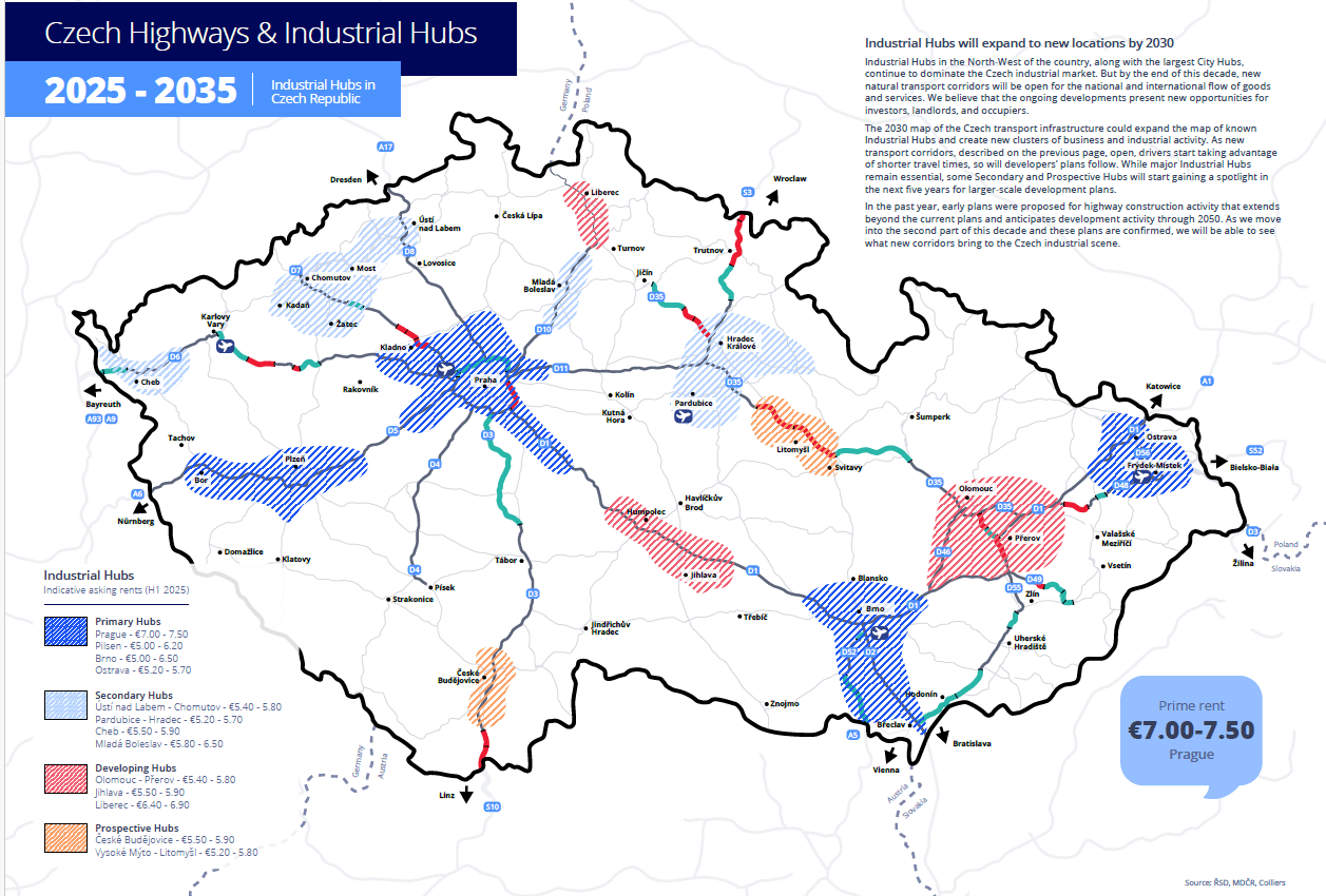 Colliers: České dálnice a logistické huby 2025 - 2035