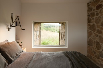 Zrekonstruovaná ruina původního domu nabízí centrální obytný prostor s dvojitou výškou, kuchyň a jídelnu, s ložnicemi na obou koncích. Ocelové schodiště vede od hlavního obytného prostoru až k pracovnímu prostoru a ložnici, a vytváří tak dynamické spojení mezi jednotlivými zónami domu. Ve druhé budově se nachází samostatný obývací pokoj s okny, které rámují působivé výhledy na okolní krajinu.