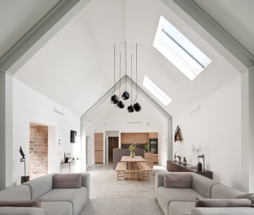 Interiéry domu jsou designovány s ohledem na světlo a prostor. Centrální obytný prostor vyniká světlými stěnami, ocelovým konstrukčním rámem a šedým nábytkem, což vytváří moderní a vzdušný prostor. Ložnicím dominují původní kamenné zbytky zdí, což jim dodává charakteru a historický šarm.