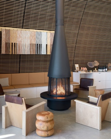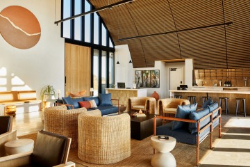 Designérka Shannon Niehenke z Narrative Design Studio vytvořila interiér tak, aby nerušil krásu okolní pouště. V lounge zóně najdete voskované bavlněné potahy na křeslech, dřevěné stolky a koberce na betonové podlaze. Jinde si můžete užít večer u černého kruhového krbu, pod koženou tapisérií připomínající vintage třásňové bundy.