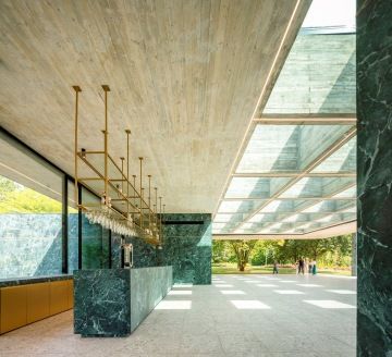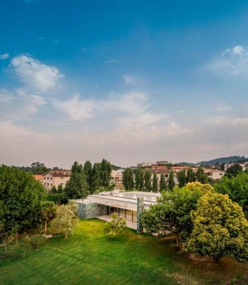 Nový pavilon, který slouží jako místo pro setkávání, kulturní a společenské akce, nahradil původní zanedbané parkoviště. Architekti se zaměřili na vytvoření prostoru, který bude působit jako přirozené rozšíření zahrady, a proto navrhli prosklený interiér bez podpěrných sloupů, jenž maximalizuje spojení s okolním prostředím. „Hledání esence lze chápat jako snahu porozumět a vyjádřit pravou podstatu něčeho, v tomto případě vztahu mezi člověkem, přírodou a architekturou,“ vysvětluje architekt Henrique Marques.