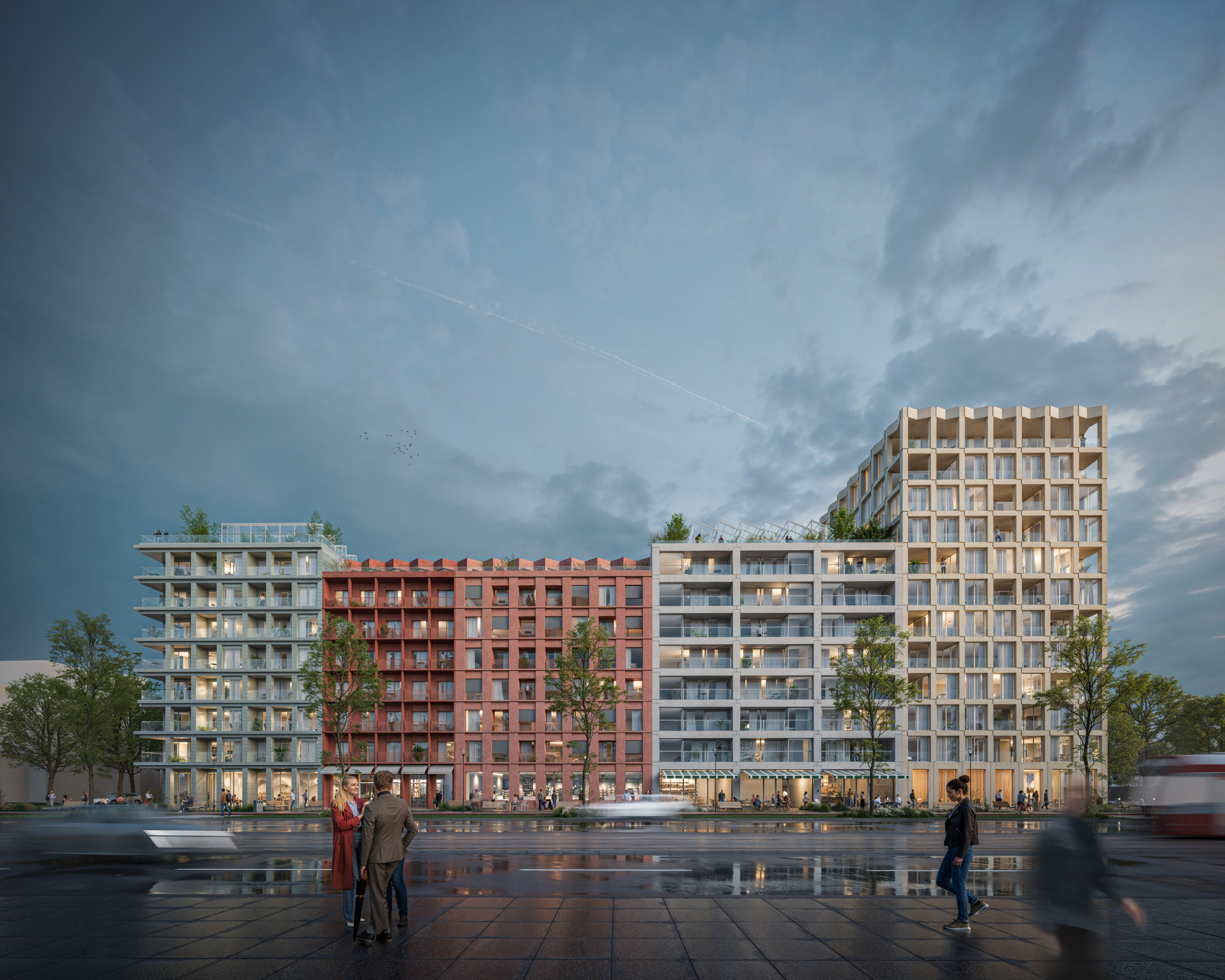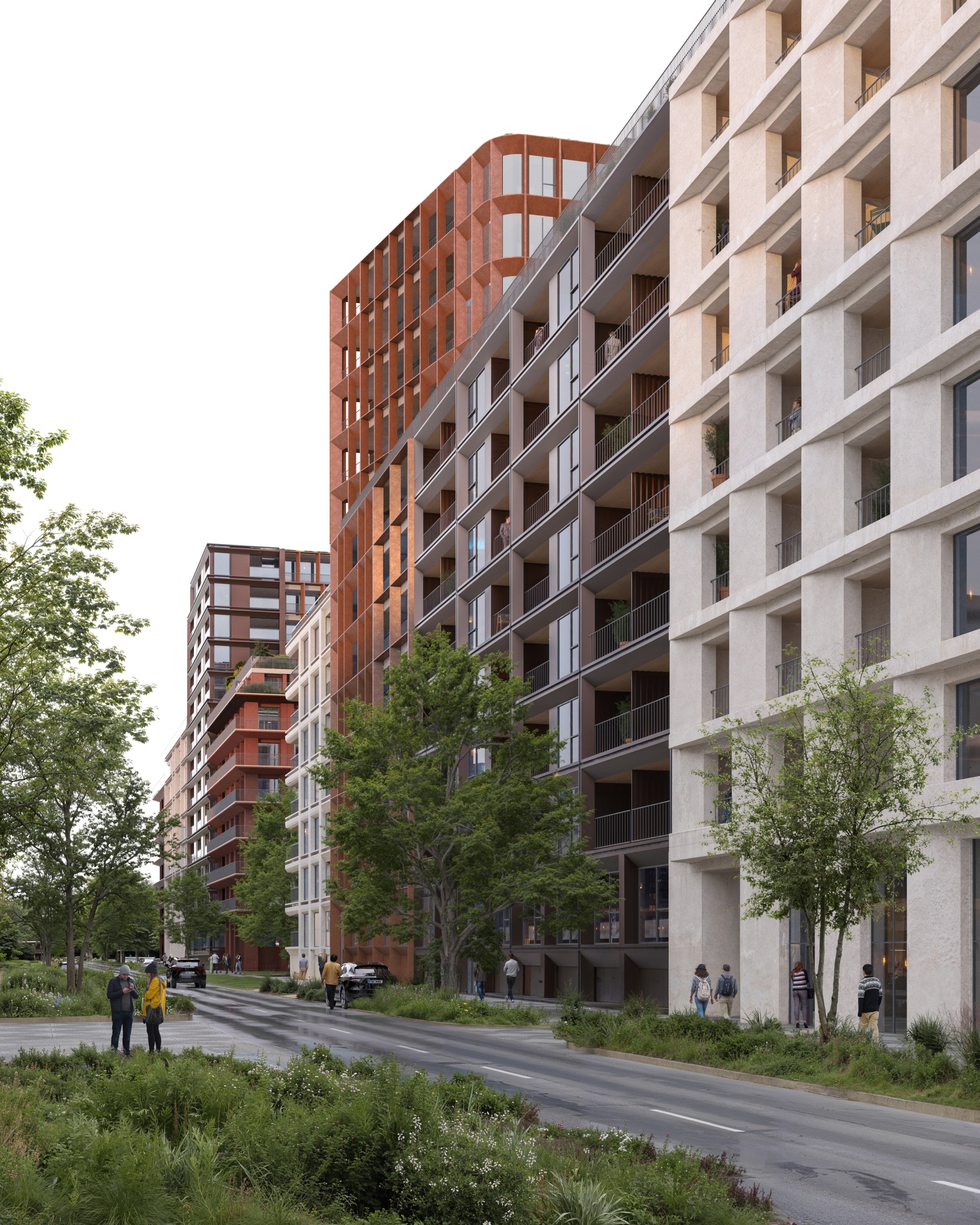 Ještě před definitivním schválením změny územního plánu se Sekyra Group spolu s městem rozhodly neztrácet čas. Paralelně proto probíhal architektonický workshop s nezávislou porotou, jehož cílem bylo prověřit podobu prvních domovních bloků i veřejných prostranství. Výsledkem je výběr čtyř architektonických týmů – UNIT architekti, Klaska ltd, edit! architects a majo architekti. Každý z týmů navrhl dva bloky a jejich okolí. Bloky jsou výrazně větší než ty ve Smíchov City, každý má pojmout zhruba šest stovek bytů, a pracují s jednotnou podlažností kolem osmi nadzemních podlaží, místy akcentovanou výškovými dominantami až do dvanácti pater. Jak upozorňuje Leoš Anderle ze společnosti Sekyra Group, jde i o signál vyspělosti české architektonické scény: zatímco dříve se velké bloky raději dělily mezi více ateliérů, dnes už je možné svěřit celý blok jednomu architektovi a dosáhnout přesvědčivého výsledku.
