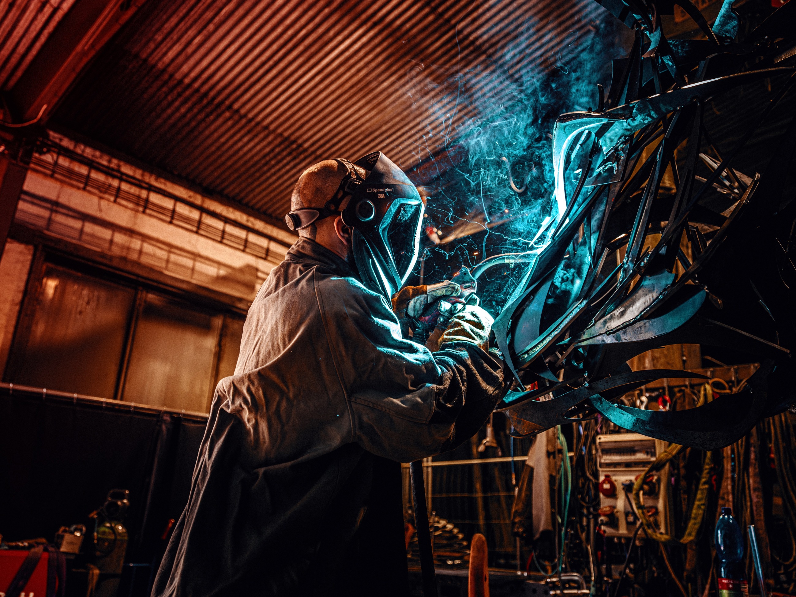 Kromě laserového vypalování používáte i svářečky. A pouštíte některá díla z jeřábu z několikametrové výšky, což bylo v rámci vaší vysokoškolské práce. Pracujete takto ještě dnes?
