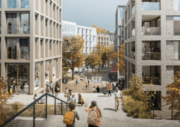 Ano, Čtvrtý kvadrant, rozlehlé území vedle Victoria Palace, chybějící část Vítězného náměstí. Nikomu se dlouhé roky s touto plochou nepodařilo nic udělat, i když je dlouhodobě určena k zástavbě. Až teď se ve spolupráci se skupinou Sekyra Group a Kaprain, ale i v koordinaci s městem, Městskou částí Praha 6 a sousední univerzitou, snažíme to místo oživit a celé náměstí dostavět dle původního záměru architekta Engla. Vznikne tam kombinace bytových domů, komerční i kancelářská budova a samozřejmě opět mnoho retailových ploch. Nechci tomu říkat obchodní centrum, ale bude to rozsáhlé, propojené se stanicí metra, a určitě to do té lokality přinese nové služby, které tam v současné době chybějí. S městskou částí plánujeme i vznik kulturního centra, aby obyvatelé stotisícové Prahy 6 měli adekvátní místo pro setkávání a kulturní akce. A jedna z nových budov bude určena pro VŠCHT. Vznikne tedy smíšený projekt, nové městské bloky, které budou kombinovat bydlení, obchod, práci, vzdělání, zábavu i odpočinek. Do jednoho území se vtiskne mnoho funkcí. Nejvíce pozornosti upoutají dva bytové domy v popředí, které uzavřou celé náměstí a určitě budou opět architektonicky značně vynikat.