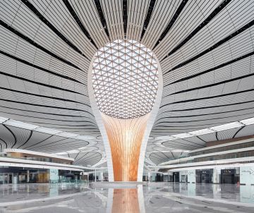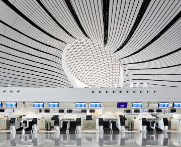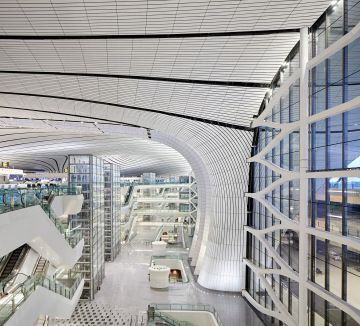Hvězdicovitě tvarované letiště Beijing Daxing, navržené zesnulou Zahou Hadid ve spolupráci s firmou ADPI, bylo dokončené v roce 2019 a patří s rozlohou 700 000 metrů čtverečních k největším na světě. Je napájeno solárními panely, využívá rekuperaci tepla přes geotermální čerpadlo a má systém sběru dešťové vody.
