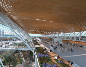 Rozšíření letiště Seattle-Tacoma o 13 520 metrů čtverečních bude mít za hlavní prvek velké centrální schodiště a sochařský pilíř obložený místním douglasovým dřevem. Podle architektů bude projekt, jehož dokončení se plánuje na rok 2027, využívat strategie ke snížení uhlíkové stopy včetně fotovoltaických panelů na střeše, elektrochromatických oken a vytápění bez fosilních paliv.