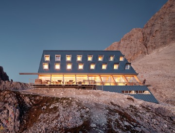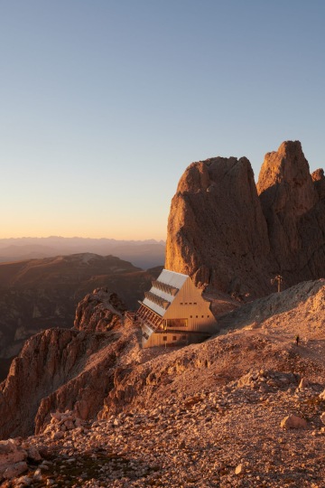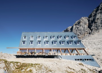 Architektonické studio Senoner Tammerle Architekten vytvořilo v italských Alpách horskou útulnu, která díky galvanizované oceli na fasádě odráží barvy oblohy a mění se v průběhu dne i v ročních obdobích.