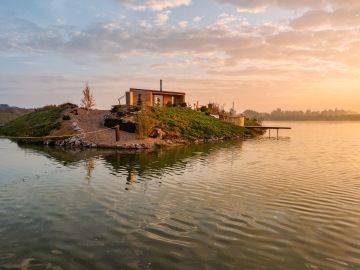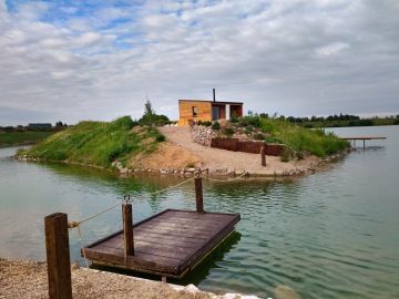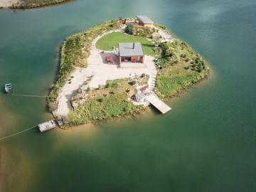 Proměna pískovny v prostředí plné klidu a pohody nebyla snadná, ale Matyáš se do ní pustil s elánem a kreativitou sobě vlastní. Vlastníma rukama postavil na Ostrově uprostřed jezera dřevěný domek, kde využil i materiály z dob těžby písku. Přidal venkovní kuchyni, koupelnu, koupací sud a saunu s výhledem na vodní hladinu. Vše s důrazem na udržitelnost a harmonii s okolní přírodou.