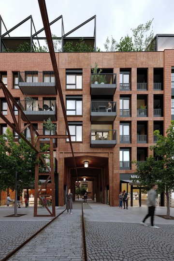 Historických motivů, na něž lze navázat, je tak v lokalitě více než dost. Jak ale taková kombinace moderního designu a průmyslové historie bude vypadat v praxi? „K vnějším plášťům budov poslouží například zvětralé kovy, které budou zráním ještě víc získávat na ryzím, dramatickém vzhledu. Ve stejném duchu se ponese paleta použitých barev. V liniích domu se pak potkávají takřka všechny geometrické tvary – včetně oblých rohů. A právě oblouky jsou pro železniční legendu Pražského Semmeringu charakteristické,“ popisuje Viktor Peška.