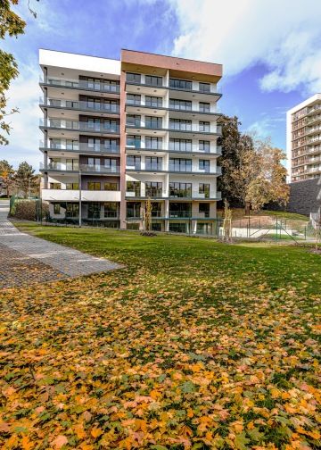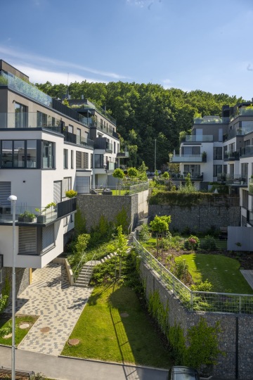 Také zde s sebou však výhoda v podobě blízkosti přírodní rezervace nese určitá úskalí. Jak na zeleň citlivě navázat? A jde vůbec přírodní park s moderní bytovou zástavbou citlivě skloubit dohromady? Podle Dušana Krajči určitě ano. „I když se jedná spíše o výstavbu „sídlištní“, tak jsme se pokoušeli co nejvíce odklonit od zavedeného „typického vizuálu“. Chtěli jsme se výrazem stavby, i když má budova na výšku osm pater, spíše přiblížit k zevnějšku větší vily nebo rodinného domku,“ přibližuje uvažování o koncepci projektu, který již na první pohled zaujme velkorysými balkony, jež byty s venkovním prostorem elegantně propojují.