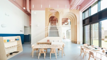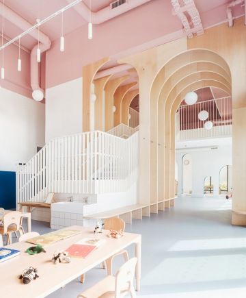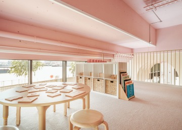 The Nest je ukázkou, jak lze moderní architekturu propojit s hravostí, která je nezbytná pro předškolní vzdělávání. Díky přírodním materiálům, tlumeným odstínům a promyšlenému členění prostoru se dětem dostává nejen bezpečné a podnětné prostředí, ale také přímé propojení s okolní přírodou. Ať už dorazí rodiče do školky pěšky, nebo připlují lodí, The Nest se pro malé návštěvníky stává doslova druhým domovem.