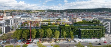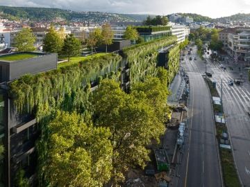 Calwer Passage v německém Stuttgartu propojuje přírodu a architekturu díky kaskádovitým balkonům pokrytým zelení. Ateliér Ingenhoven Associates nahradil horní patra šesti novými úrovněmi kanceláří a bytů, které korunuje střešní terasa plná stromů.