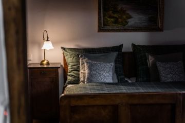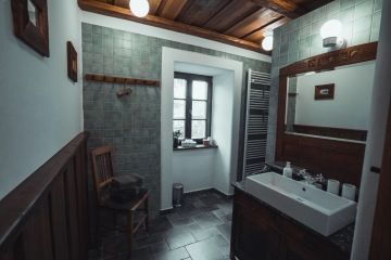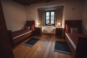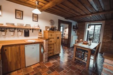 Stylové ubytování pro maximálně šest osob v kamenné chalupě přizpůsobené současnému životu. Plně vybavená kuchyně s jídelnou, prostorný obývací pokoj s přímým vstupem na krytou terasu a zahradu. Pokoj se dvěma oddělenými postelemi, ložnice s manželskou postelí, koupelna se sprchovým koutem a podlahovým topením.
