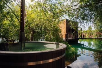 Na prostorné terase si můžete vychutnat klidné chvíle a nechat se hýčkat okolní přírodou. K dispozici je také finská sauna a koupací sud přímo na břehu, které zpříjemní pobyt v každém ročním období. Hausbót byl postaven s důrazem na udržitelnost a soulad s okolím, stejně jako domeček na Ostrově, který se nachází na druhé straně Písníku. Matyáš využil přírodní materiály a lokální zdroje, aby minimalizoval ekologickou stopu a zachoval autentický charakter místa.